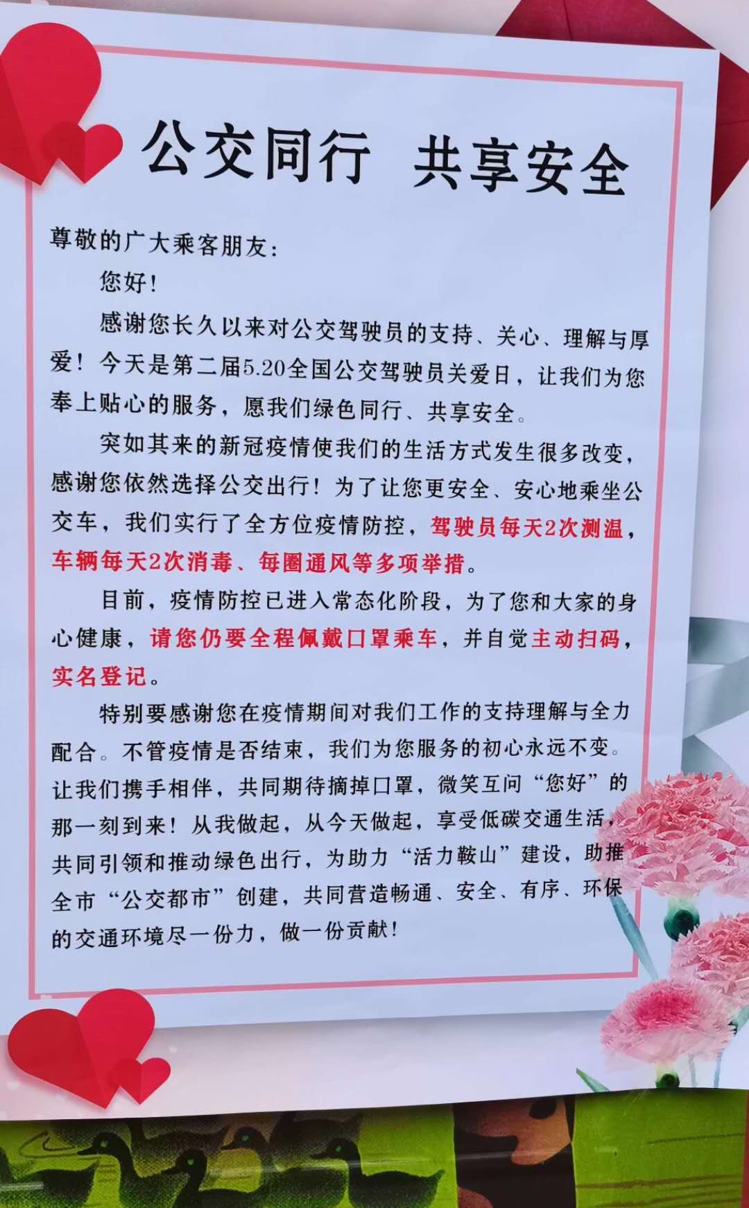 | 很多人都知道5月20日是諧音“我愛你”,但這一天還是全國第二個公交駕駛員關(guān)愛日。 鞍山公交駕駛員謝金紅根據(jù)自己20年的公交駕駛經(jīng)驗,首創(chuàng)“321斑馬線禮讓行人法”之后,越來 |